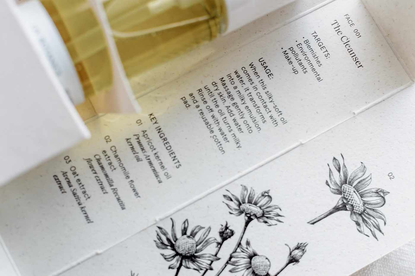 為了最大限度地減少品牌的碳足跡,我們在距離阿姆斯特丹市幾公里遠(yuǎn)的大象草纖維上使用植物基無毒墨水進(jìn)行本地印刷。主包裝盒不使用膠水,展開平展,展示每種產(chǎn)品中包含的關(guān)鍵成分的植物圖及其植物名稱和信息。用于瓶子和罐子的標(biāo)簽不含塑料,而用于運(yùn)輸?shù)亩壈b、紙帶和包裝紙是 100% 可回收和可回收的,并使用無毒的植物性油墨印刷。