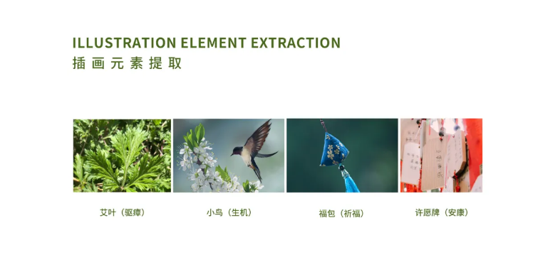 介于2020年的特殊性,西林設(shè)計在創(chuàng)意時在使用青艾元素時,還特意添加福包、許愿牌以及生機勃勃的小鳥與花朵,傳達送禮送平安,祈福安康幸福之意。