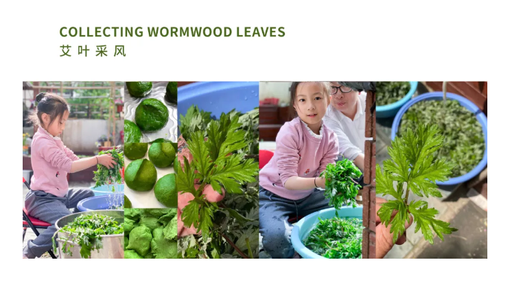 我們驅(qū)車到郊外采了許多艾葉草,洗凈拍照,并制作了青團品嘗。
